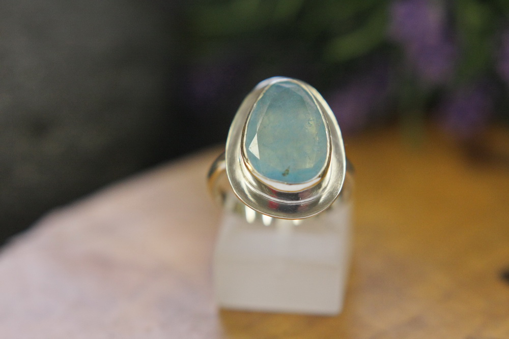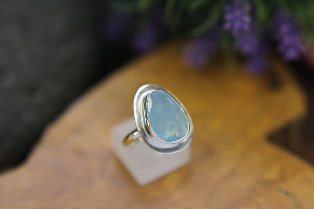 Χειροποίητο δαχτυλίδι από ασήμι 925 και ακουαμαρίνα.