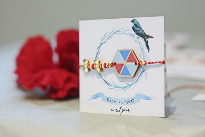 Χειροποίητο μαρτάκι με ξύλινο χαρταετό και επίχρυσα στοιχεία.