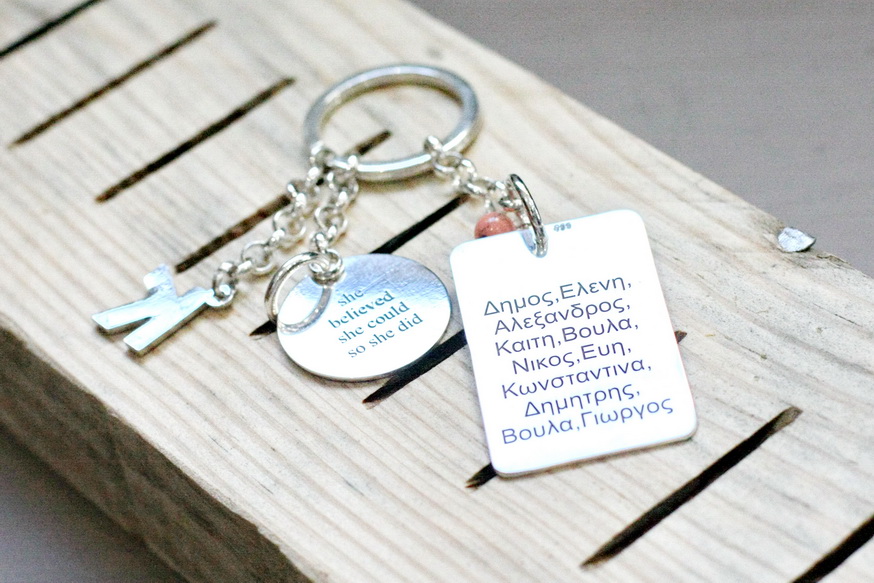 Μπρελόκ σε ασήμι 925 με χάραξη. Διαστάσεις μεγάλης καρτέλας 2,8 επί 4,2 εκατοστά,
