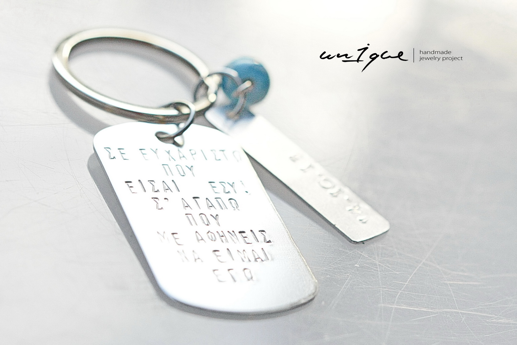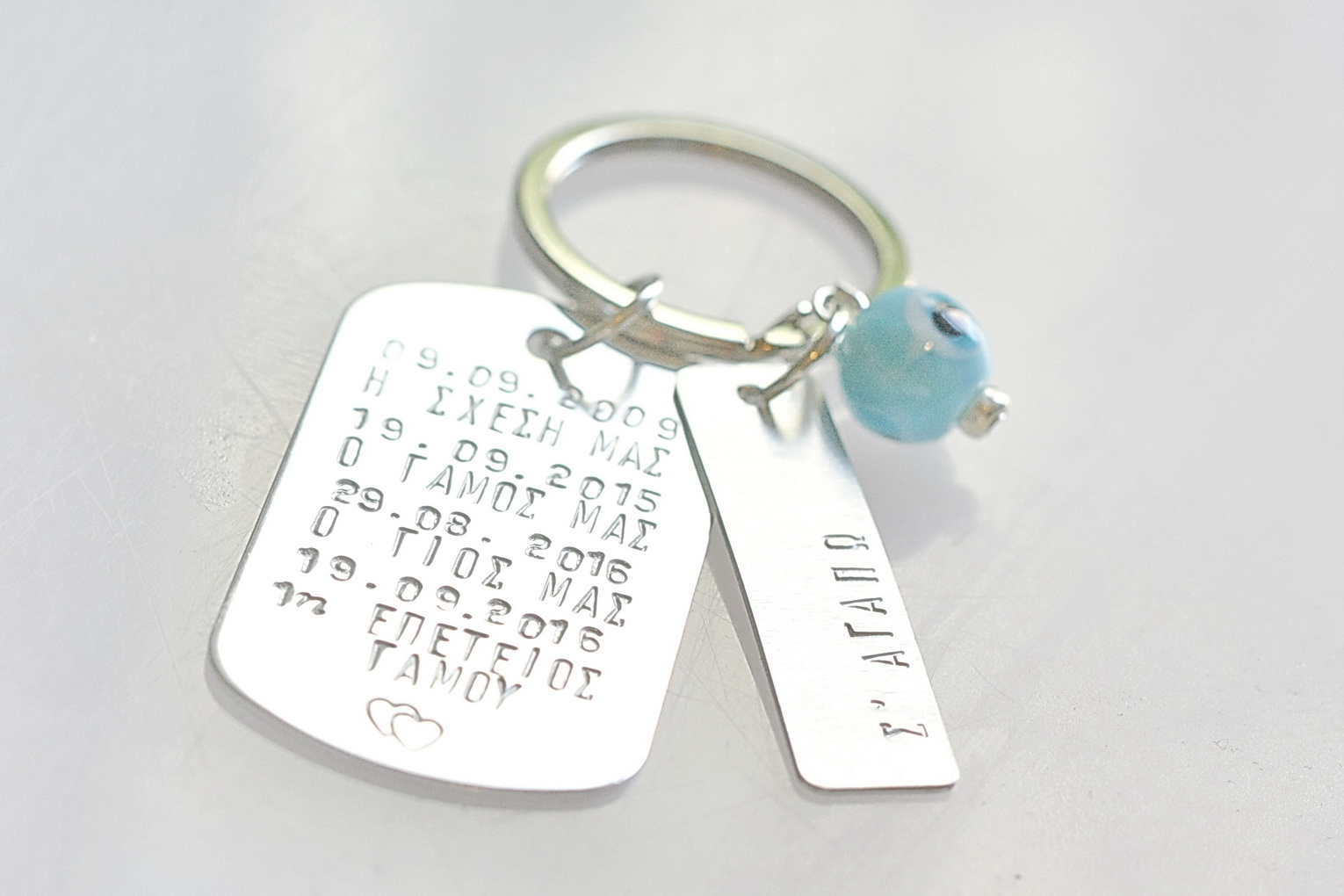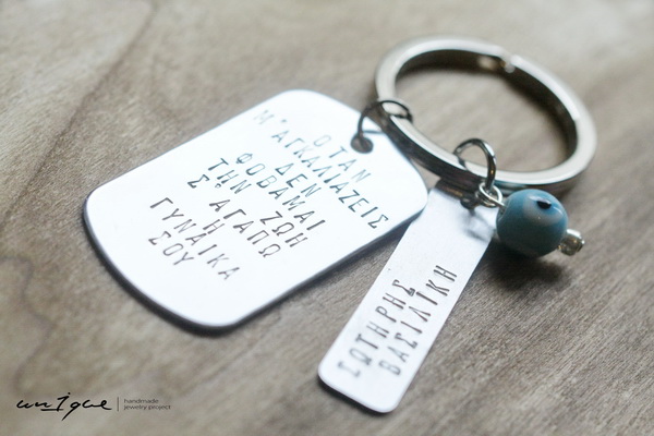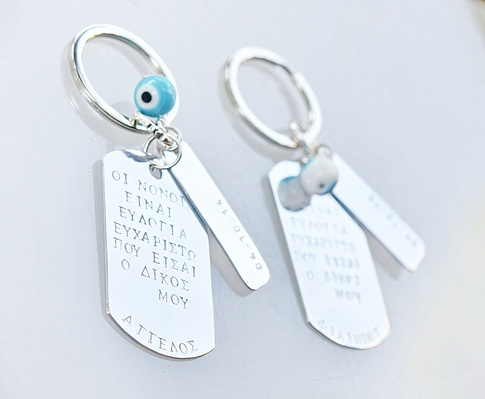 Μπρελόκ με δυο μεταλλικά στοιχεία σε αλουμίνιο.