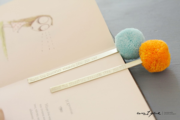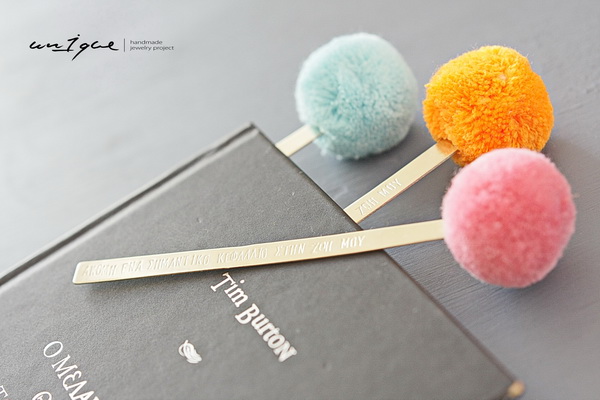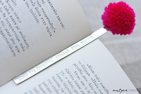 Χειροποίητος σελιδοδείκτης από αρζαντό, με το μήνυμα της επιλογής σας στολισμένος με πομ πομ .