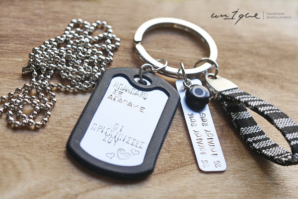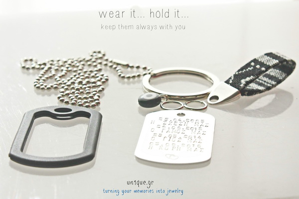 Στρατιωτική ταυτότητα από αλουμίνιο με αξεσουάρ για να γίνει μπρελόκ ή κολιέ.