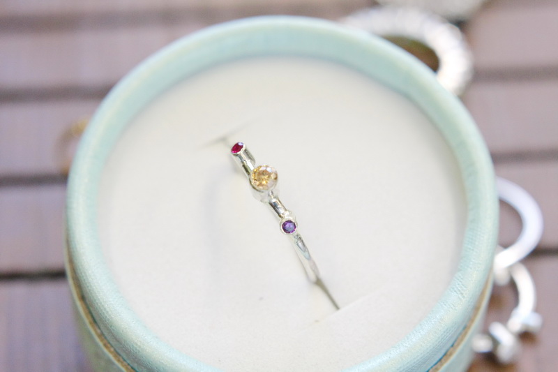 Χειροποίητο δαχτυλίδι σε ασήμι 925 με τρία ζιρκόν. Οι επιλογές στο χρώμα αφορούν το κεντρικό ζιρκόν.