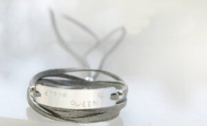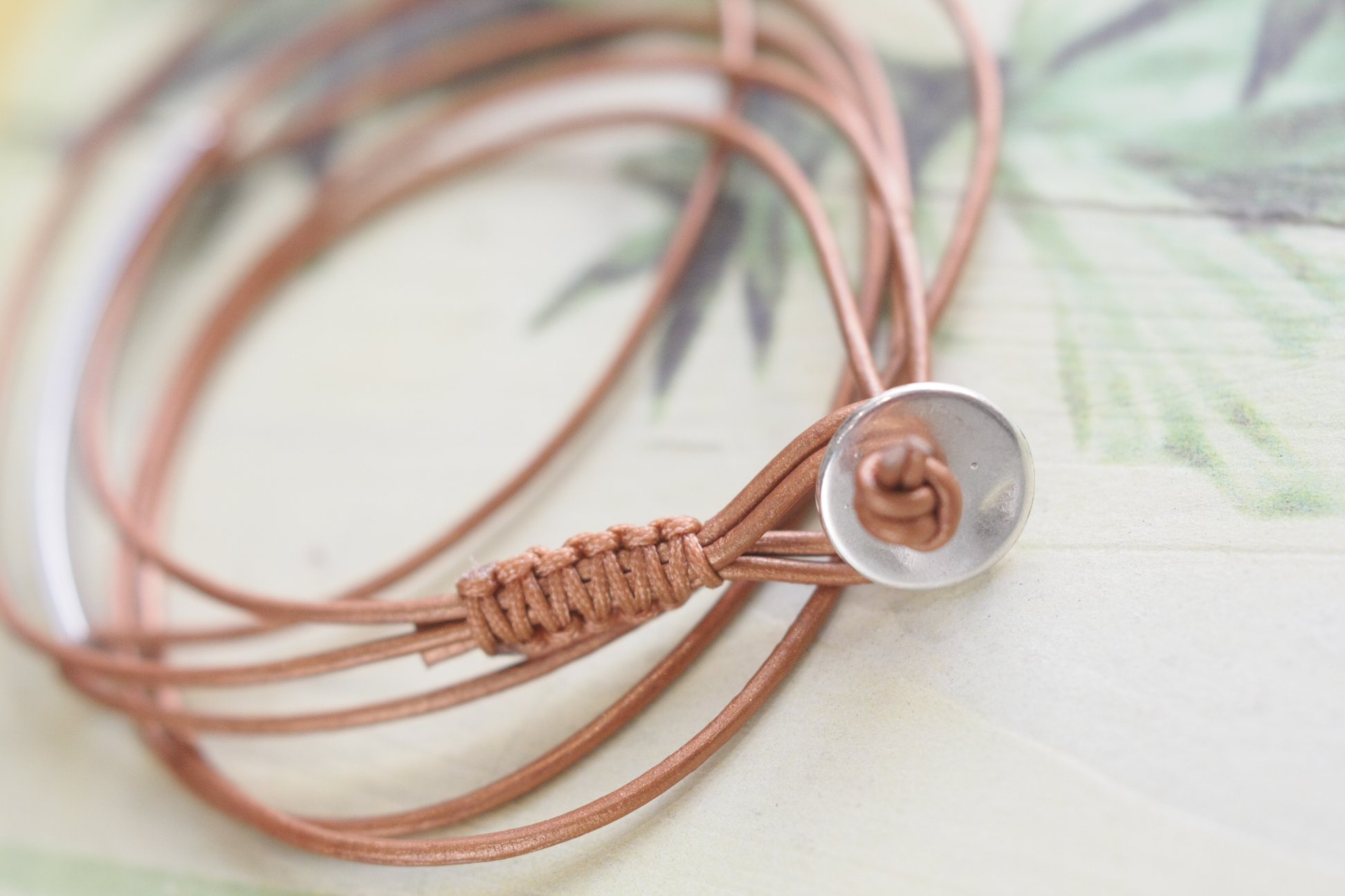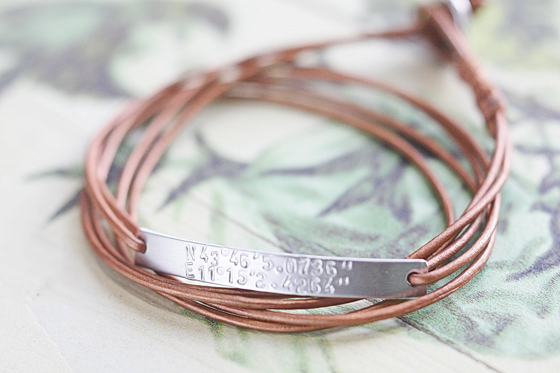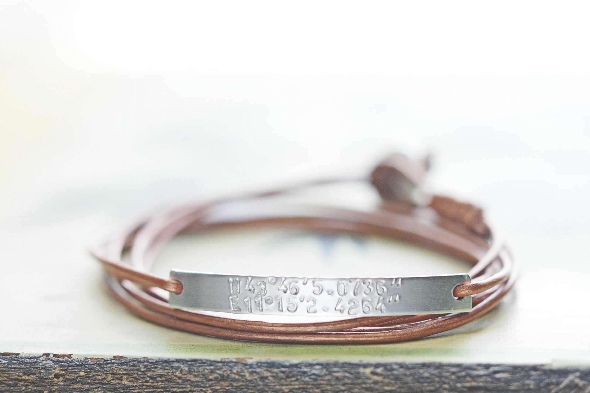 Βραχιόλι από ανοδιωμένο αλουμίνιο και δέρμα εξαιρετικής ποιότητας που γυρίζει 2 φορές γύρω από τον καρπό.