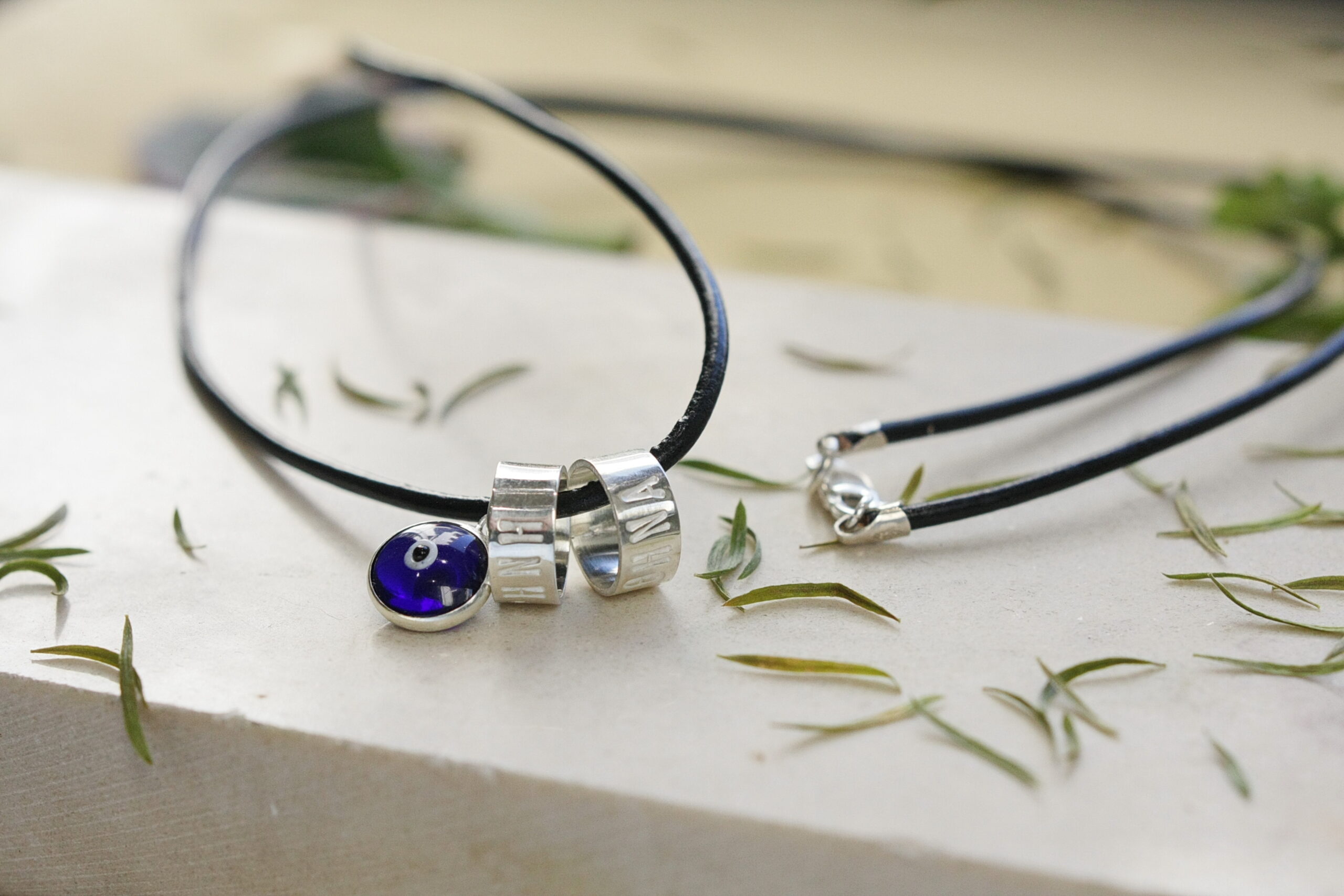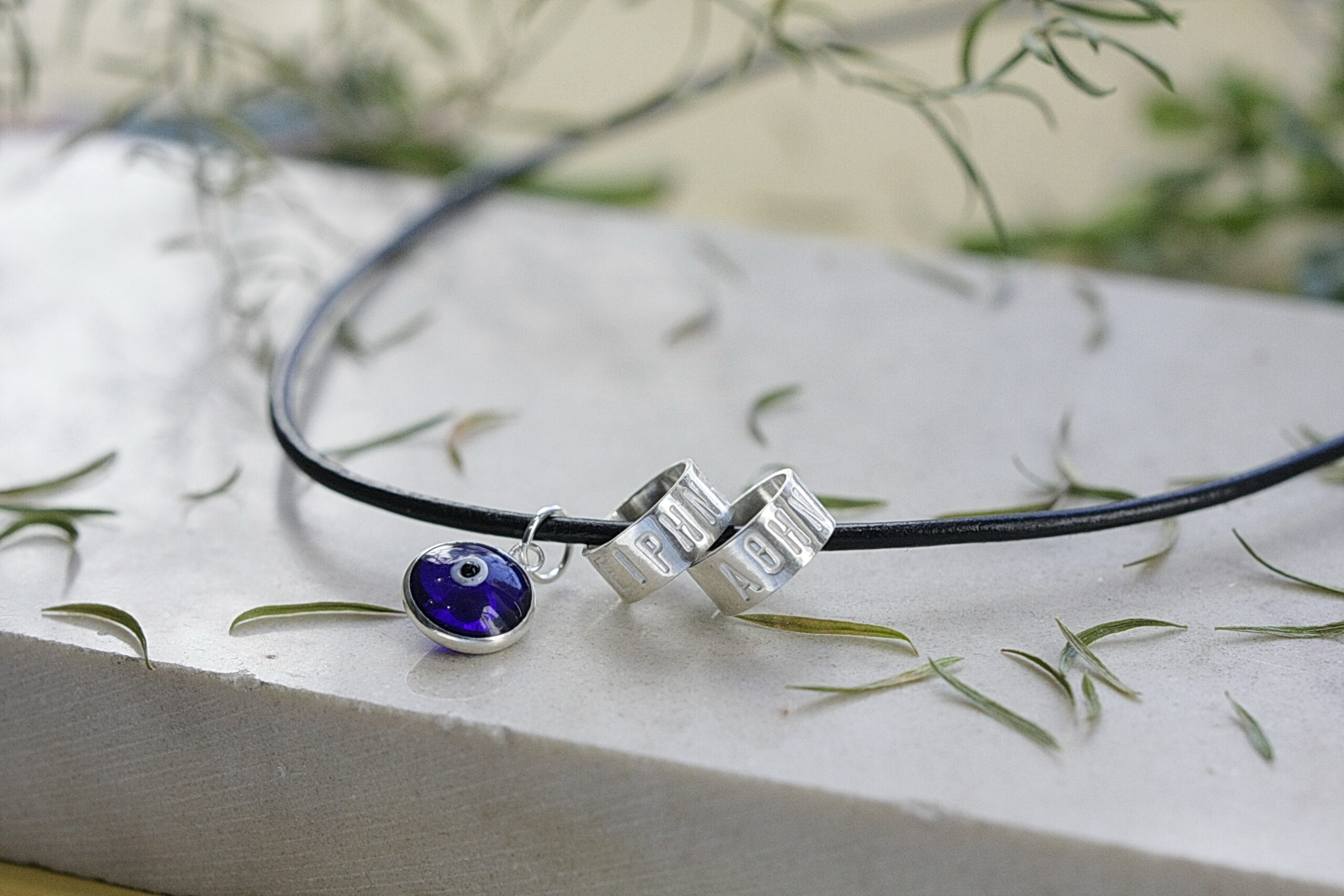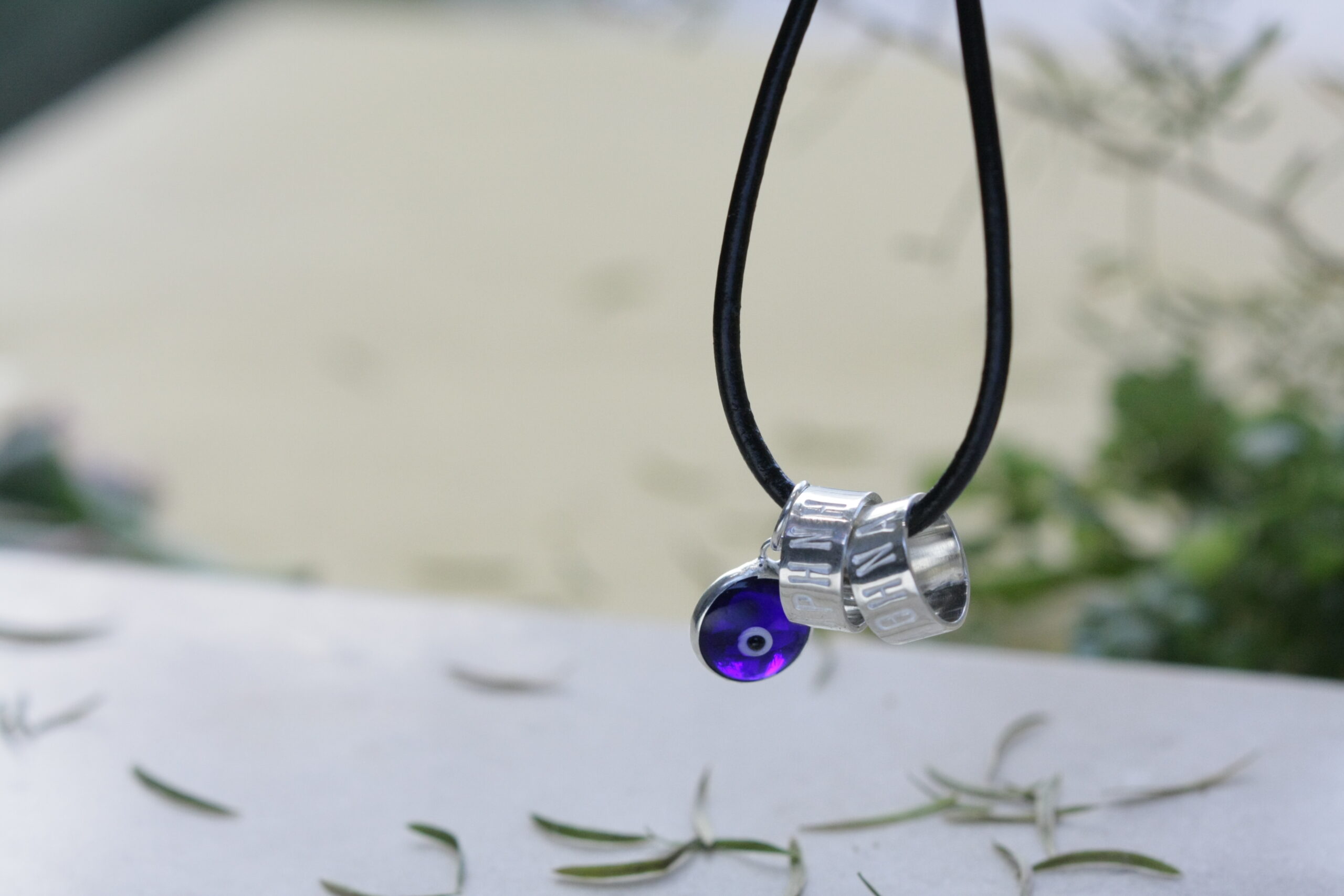 Χειροποίητο αντρικό κολιέ από ασήμι 925 και δέρμα. Το ματάκι είναι μουράνο δεμένο