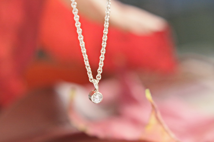 Χειροποίητο minimal κολιέ με zircon 3mm και στις δυο πλευρές του. Στην μια του μεριά έχει άσπρο zircon και στην δεύτερη μπορείτε να επιλέξετε χρώμα.