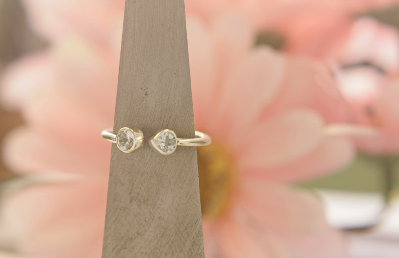 Χειροποίητο δαχτυλίδι ανοιχτό με ζιρκον και στις δυο του μεριές, Από ασήμι 925