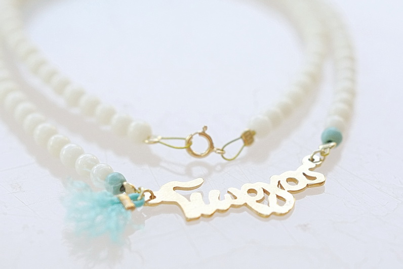 Χειροποιήτο κολιέ με το όνομά σας από ασήμι 925 κοράλι και χαολίτη. Κατασκευάζεται κατόπιν παραγγελίας.