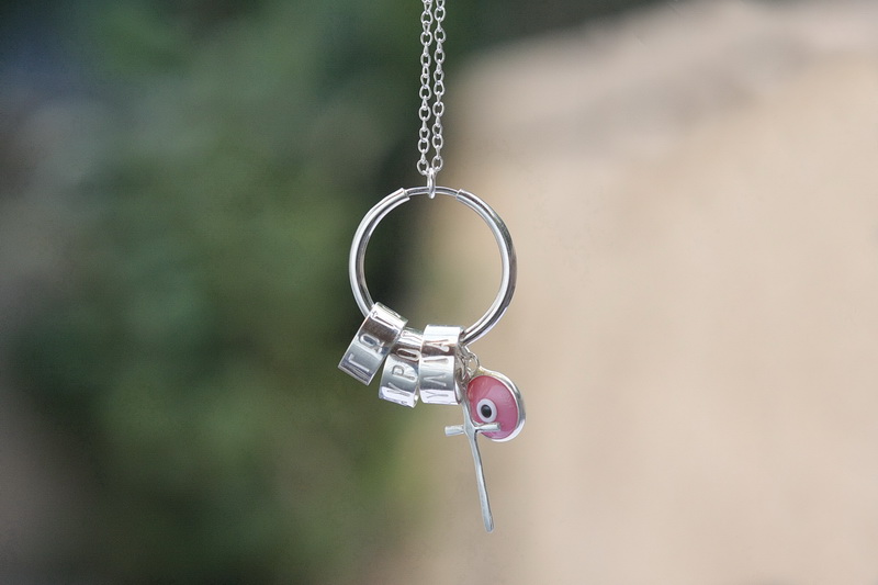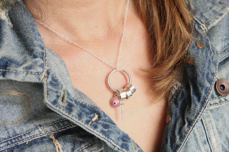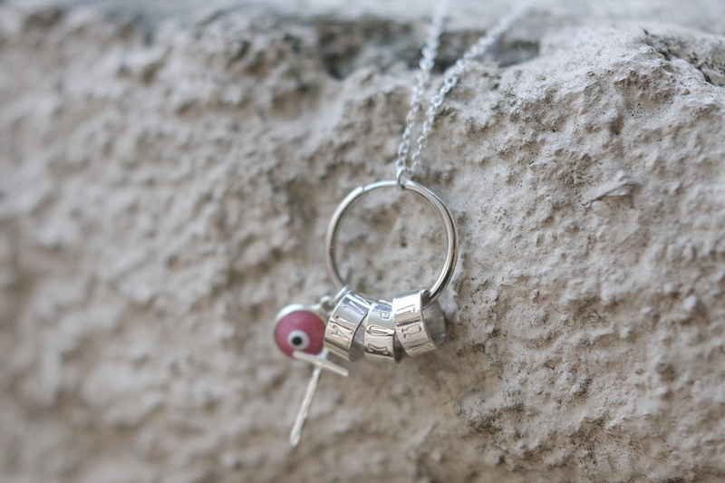 Χειροποίητο κολιέ από ασημι 925 με κρίκο στον οποίο περνούν 3 κυκλάκια με ονόματα