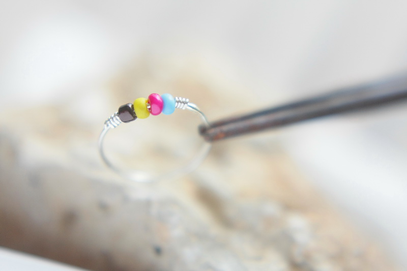 Χειροποίητο δαχτυλιδάκι από ασήμι 925 και γυάλινες χάντρες.