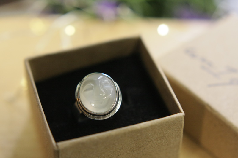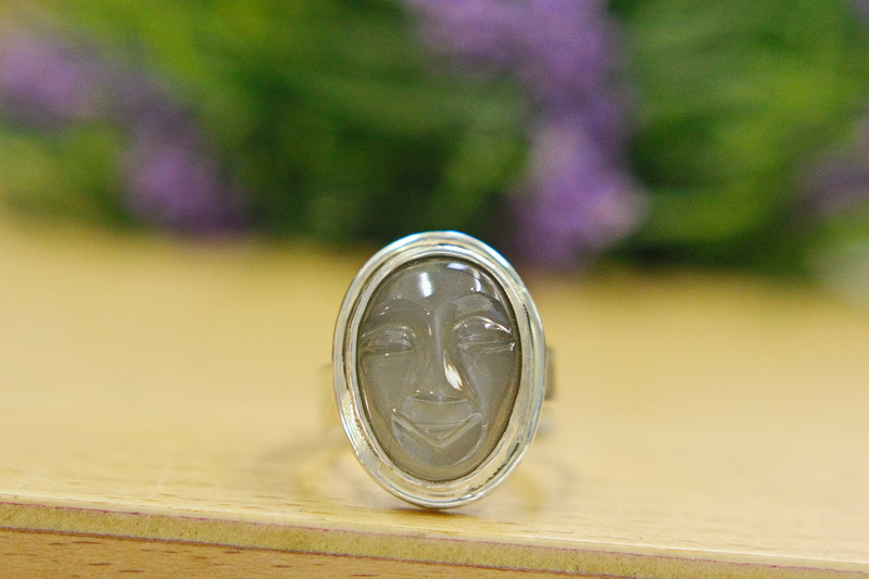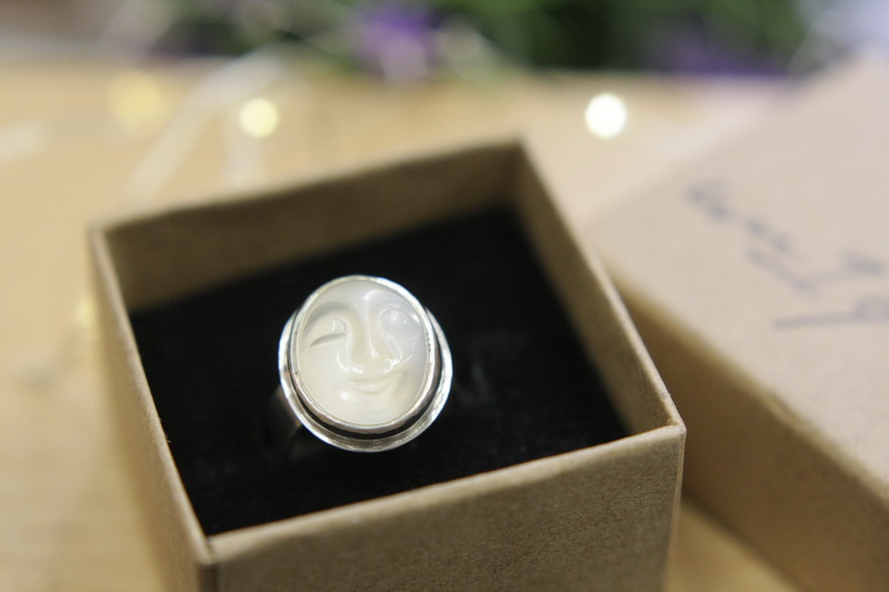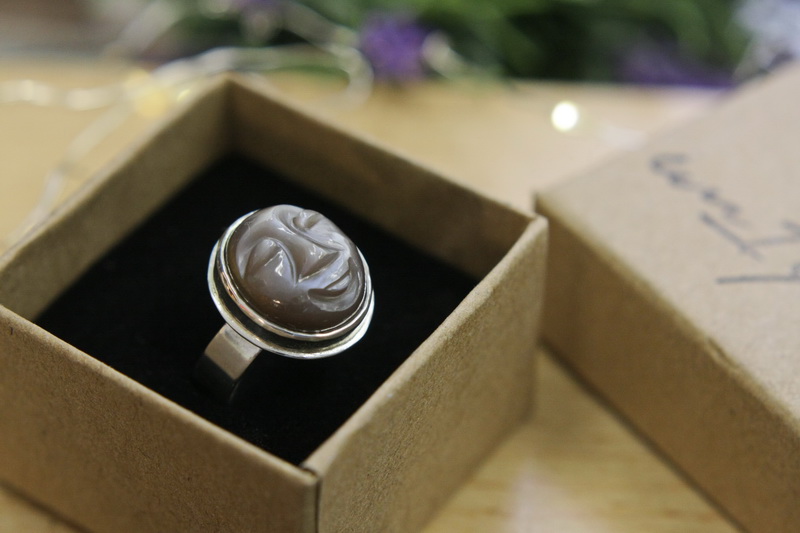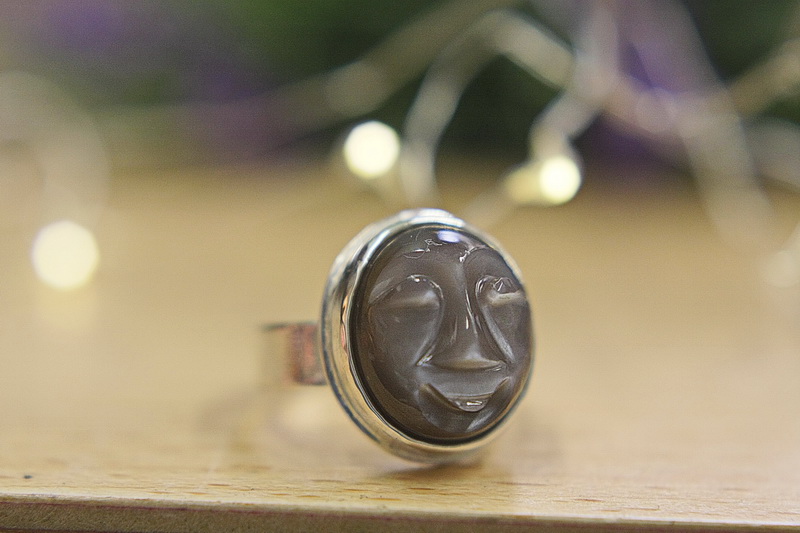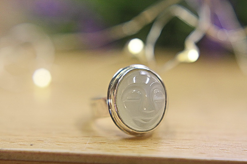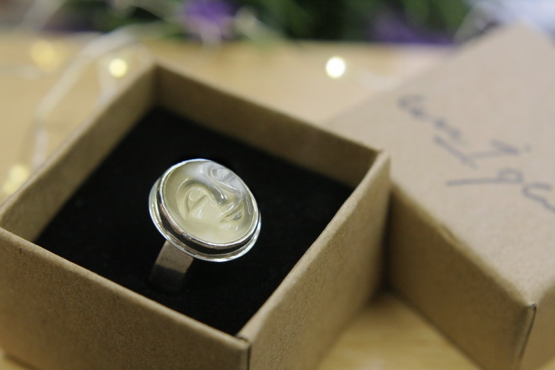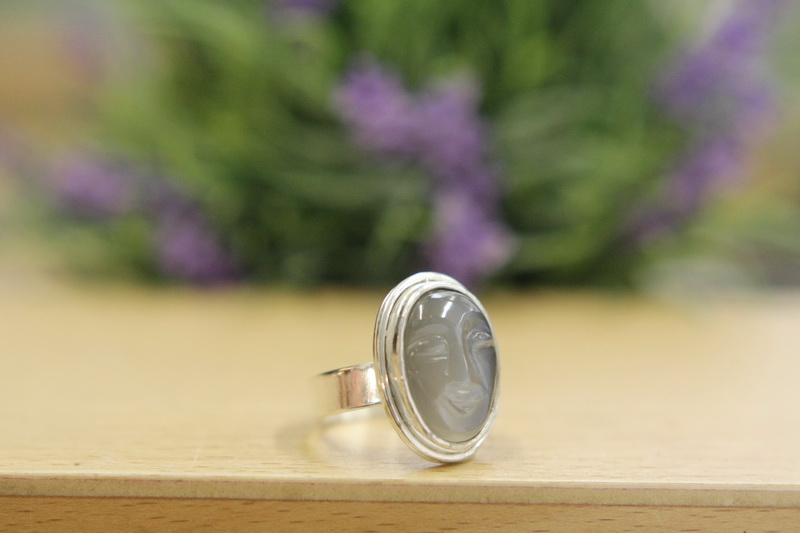 Χειροποίητο δαχτυλίδι σε ασήμι 925 με σκαλιστή φεγγαρόπετρα. Με ανοιχτή γάμπα για να μπορεί να