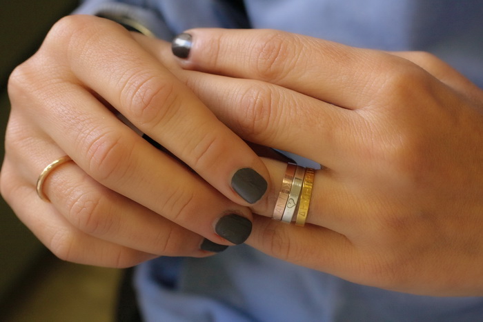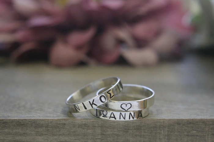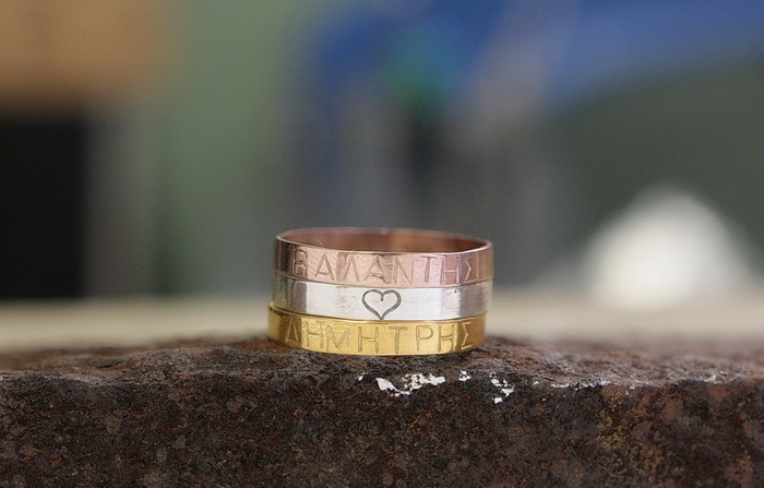 Χειροποίητο σετ τριών δαχτυλιδιών με ονόματα, σε χρυσό, ροζ χρυσό και ασήμι 925.