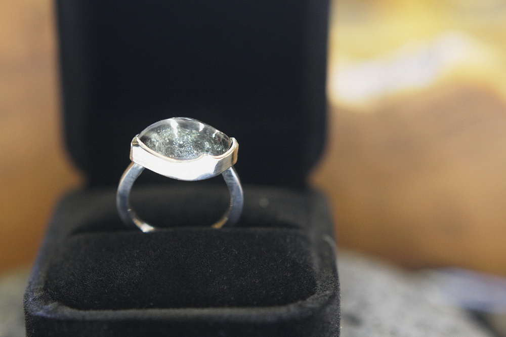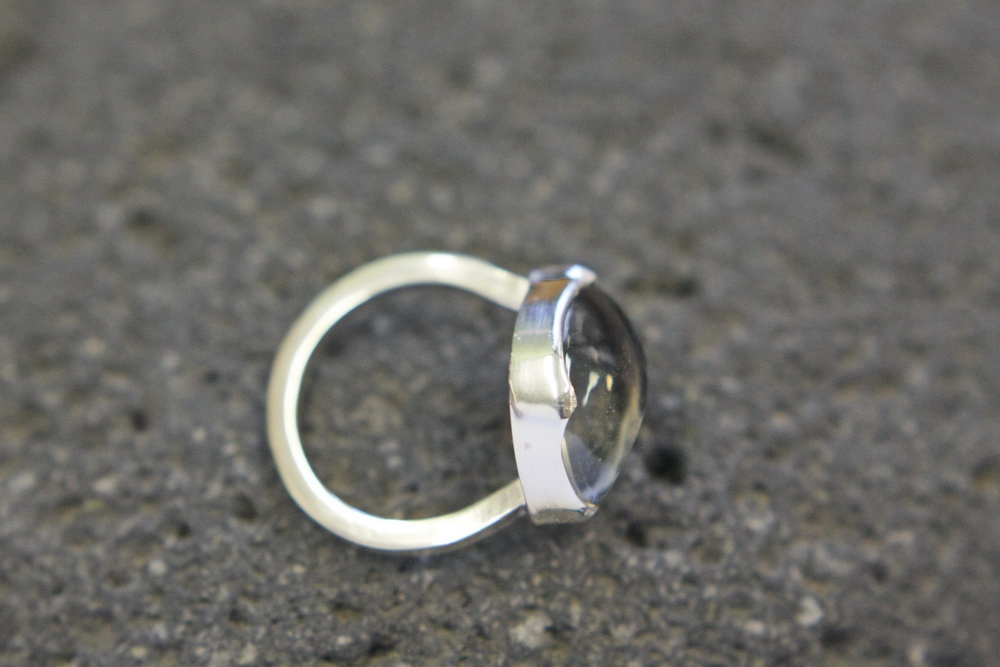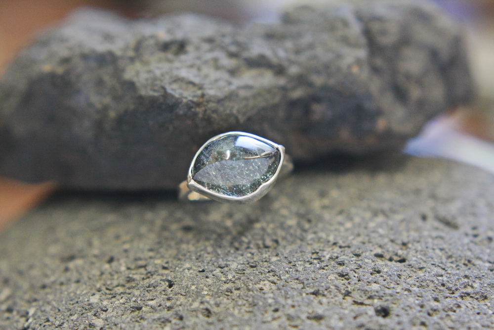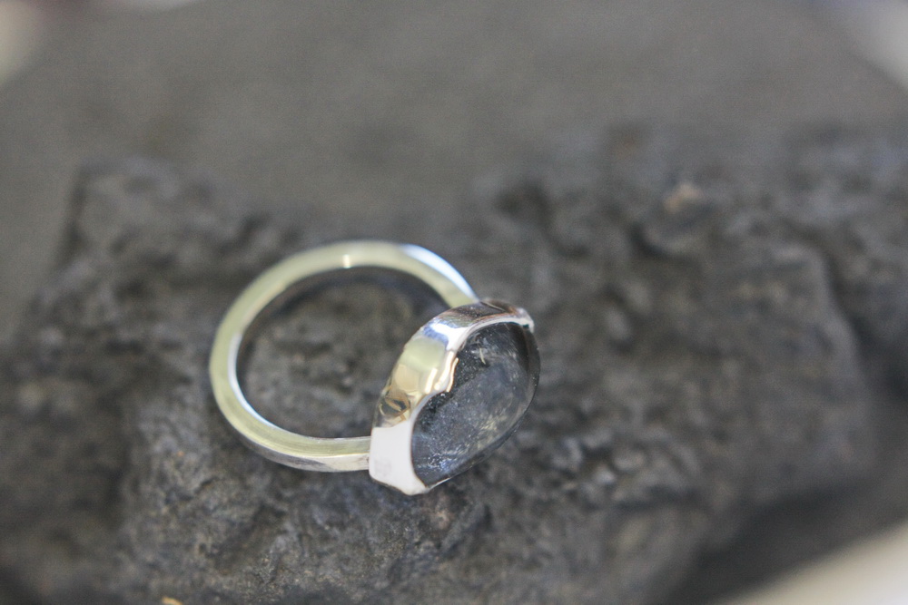 Χειροποίητο δαχτυλίδι με ντουμπλέτα αιματίτη και χαλαζία.