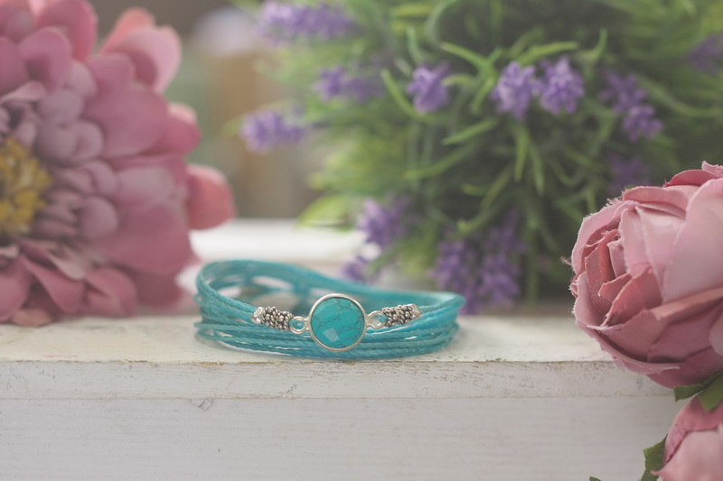 Βραχιόλι με τυρκουάζ, ασήμι 925 και κηροκλωστή εξαιρετικής ποιότητας και αντοχής.